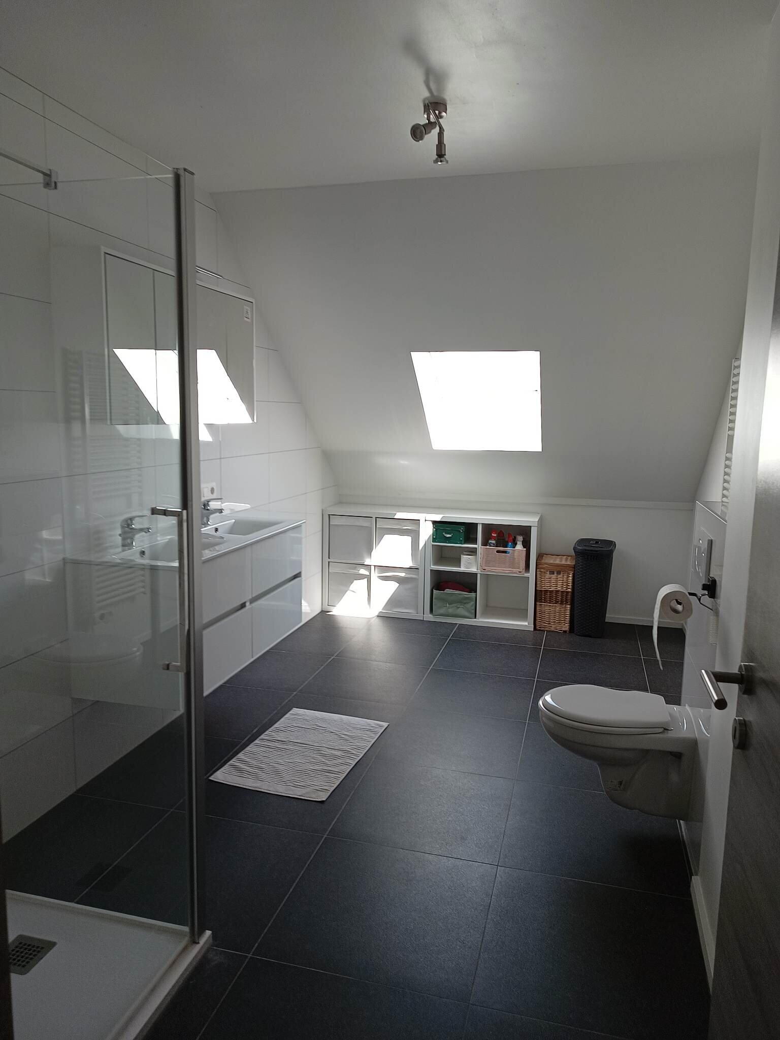 - Op de tweede verdieping is een moderne badkamer welke is voorzien van modern wastafel meubel, inloopdouche, tweede toilet en design radiator.