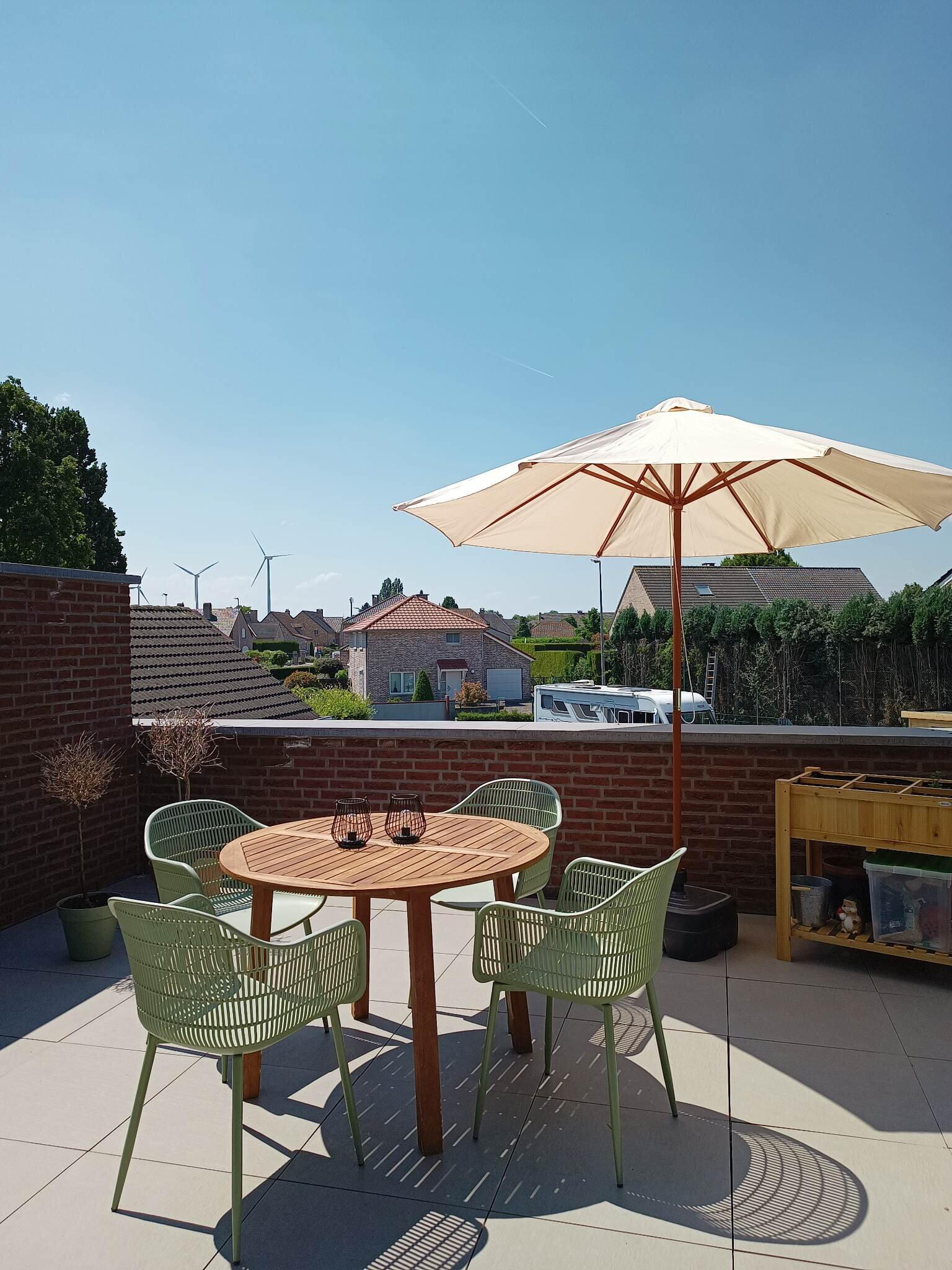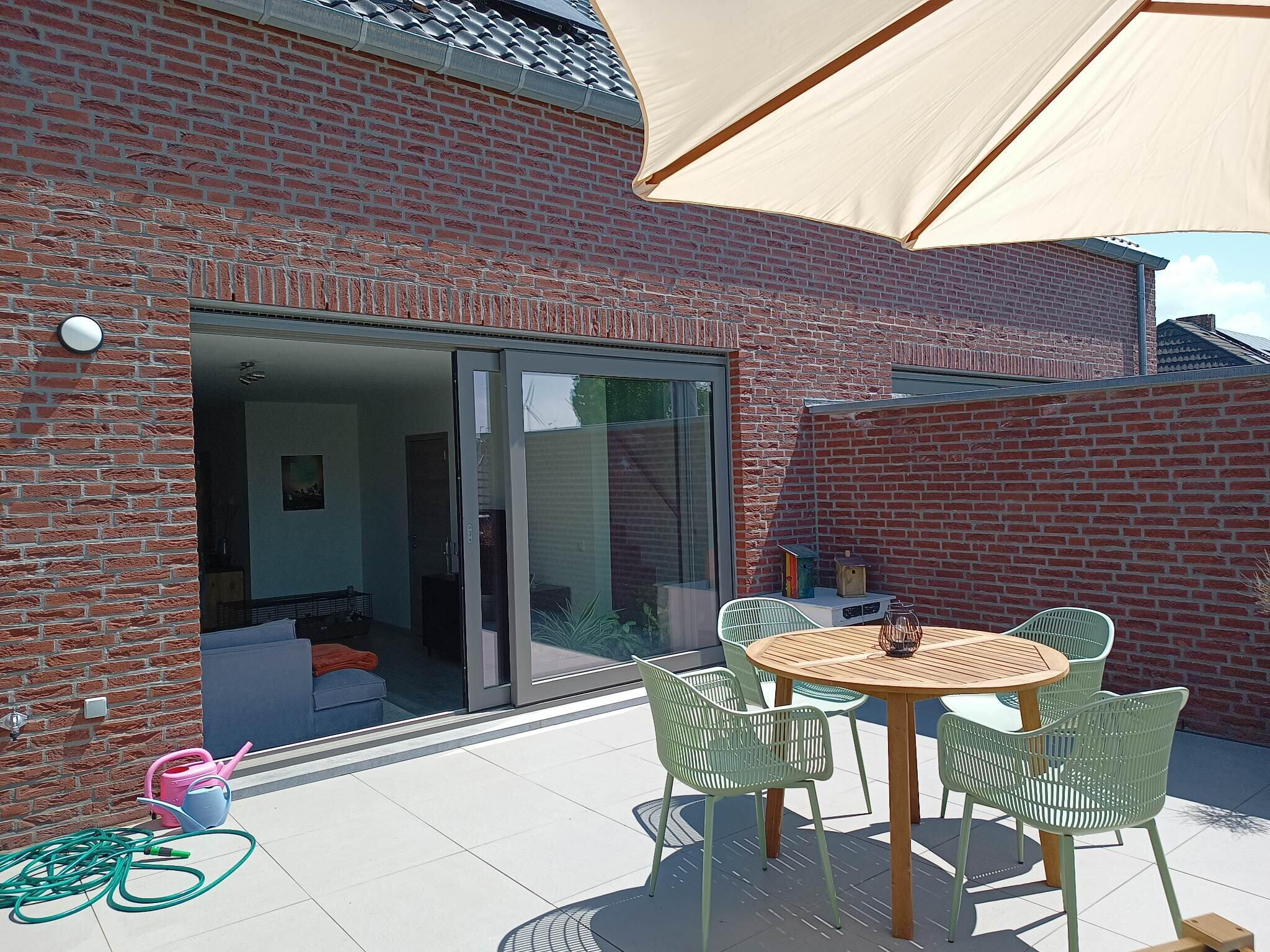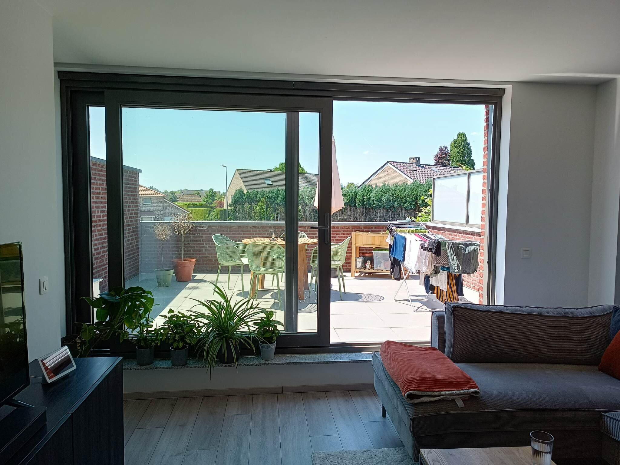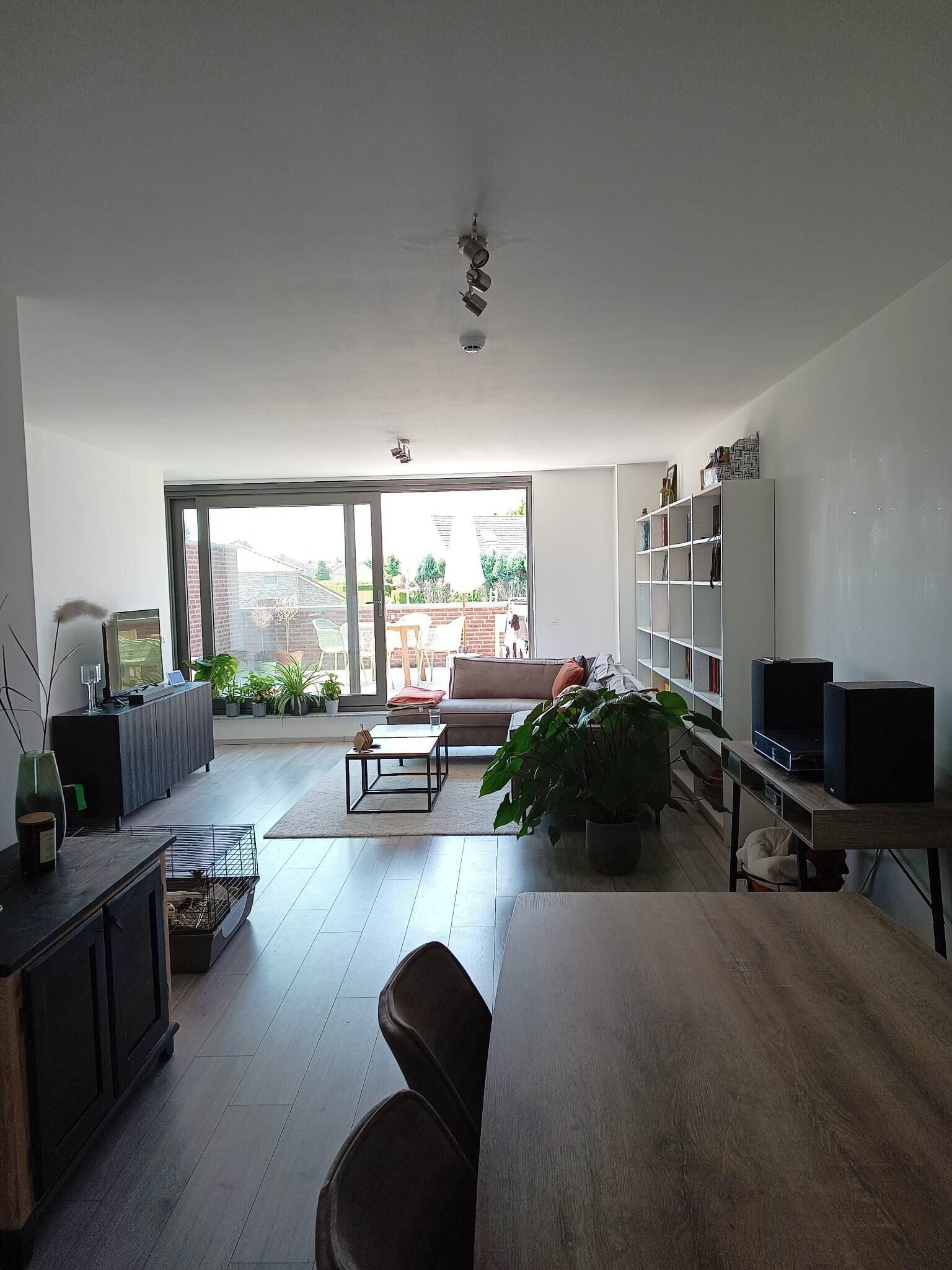 - De ruime lichte woonkamer is aan de achterzijde gesitueerd. Vanuit de woonkamer eveneens middels een grote schuifpui toegang tot terras met elektra punt en buitenkraan.